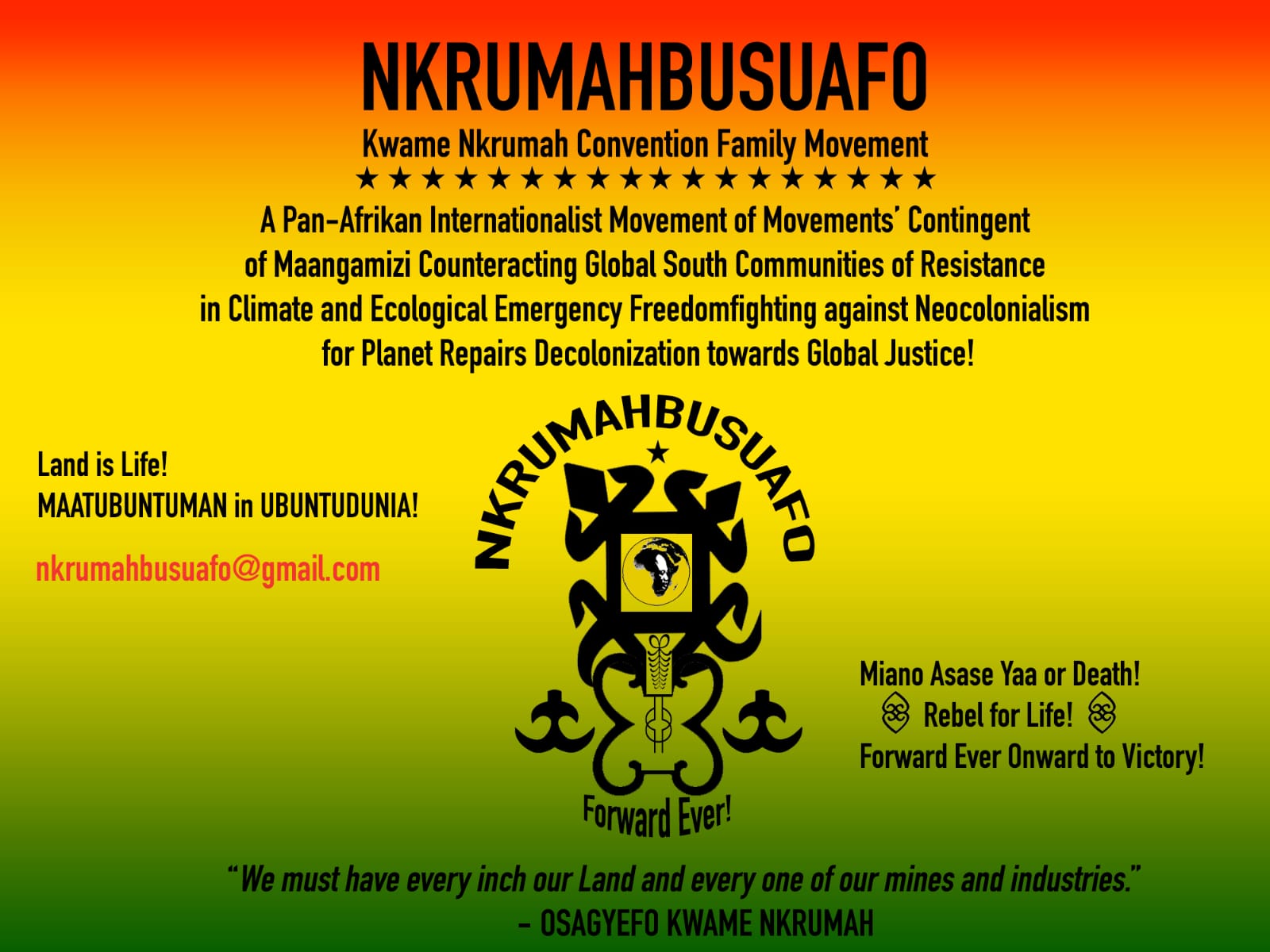 Program Description: NKRUMAHBUSUAFO NKRUMAHBUSUAFO is a Pan-Afrikan Revolutionary Movement founded abroad to serve as a living extension of the enduring legacy of Osagyefo Dr. Kwame Nkrumah — Afrika’s foremost visionary for liberation, unity, socialism, and self-determination. Rooted in the uncompromising principles of Nkrumaism, Pan-Afrikanism, and scientific socialism, NKRUMAHBUSUAFO operates as…